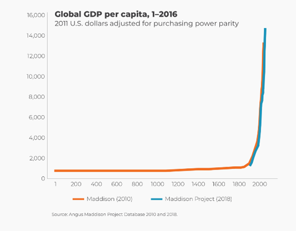 [8] (Global Income Is Rising - Human Progress). Based on the work of Dutch economic historian Angus Maddison.