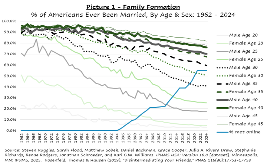 The story of the “Swipe Right” feature upgrade is different because it did not just improve upon or invent a new economic transaction. It fundamentally reshaped courtship, marriage and family formation – social institutions that for centuries have played critical roles in human and social development beyond the marketplace. Few relationships require the trust and capacity for forgiveness that a marriage does. Few roles teach selflessness as relentlessly as parenting. These are the roles that for centuries have transformed Foundational Values from abstract platitudes into convicted lived beliefs. So we should not be surprised to see conviction wane as the design of The Game’s strategic engineering routes people out of these roles.